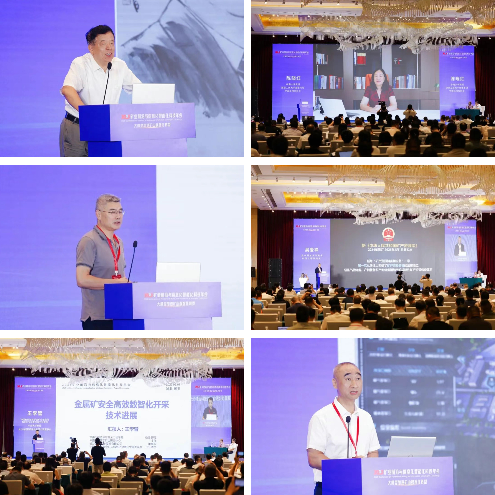 大會邀請行業內院士、專家、學者等60余人作了特邀報告,其中中國煤炭科工集團首席科學家、中國工程院院士王國法作“礦業數智技術發展與展望”特邀報告,中南大學教授、湖南工商大學黨委書記、中國工程院院士陳曉紅作“人工智能賦能新質生產力與產業創新發展”特邀報告,中國地質科學院副院長兼總地質師、中國工程院院士唐菊興作“全國銅礦找礦布局與展望”特邀報告,北京科技大學教授、中國工程院院士吳愛祥作“揚帆出海:“一帶一路”倡議下我國海外礦產資源開發的戰略思考”特邀報告,中國有色金屬學會礦山信息化智能化專業委員會主任委員、中南大學教授、迪邁科技董事長王李管作“金屬礦安全高效數智化開采關鍵技術及應用”特邀報告,大冶有色金屬集團控股有限公司董事長胡國斌作“數據賦能,打造一流礦企-中色大冶智能化建設實踐”特邀報告。